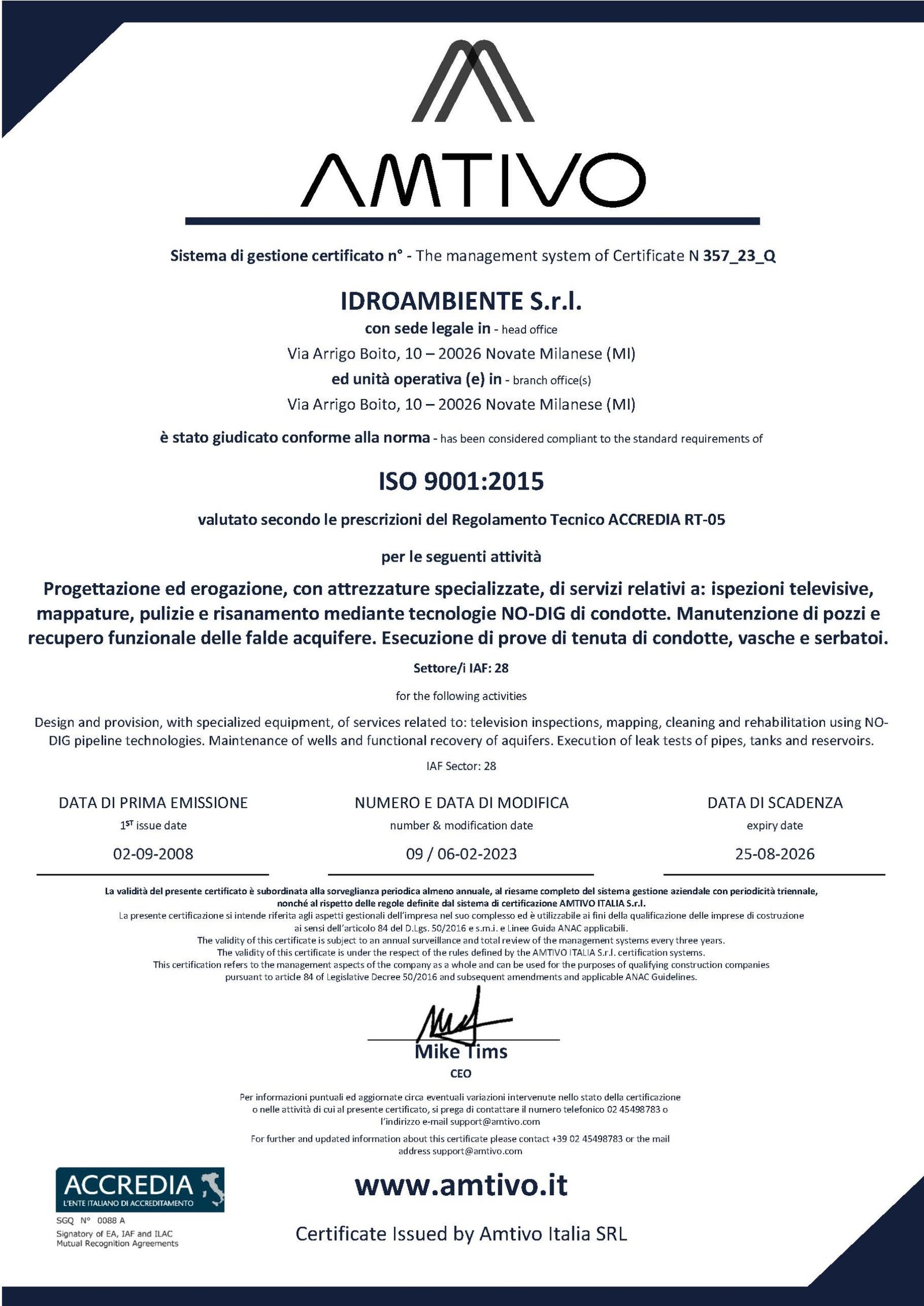 Crediamo che la qualità sia un valore imprescindibile. Per questo motivo adottiamo un sistema di gestione conforme ai più alti standard normativi del settore.