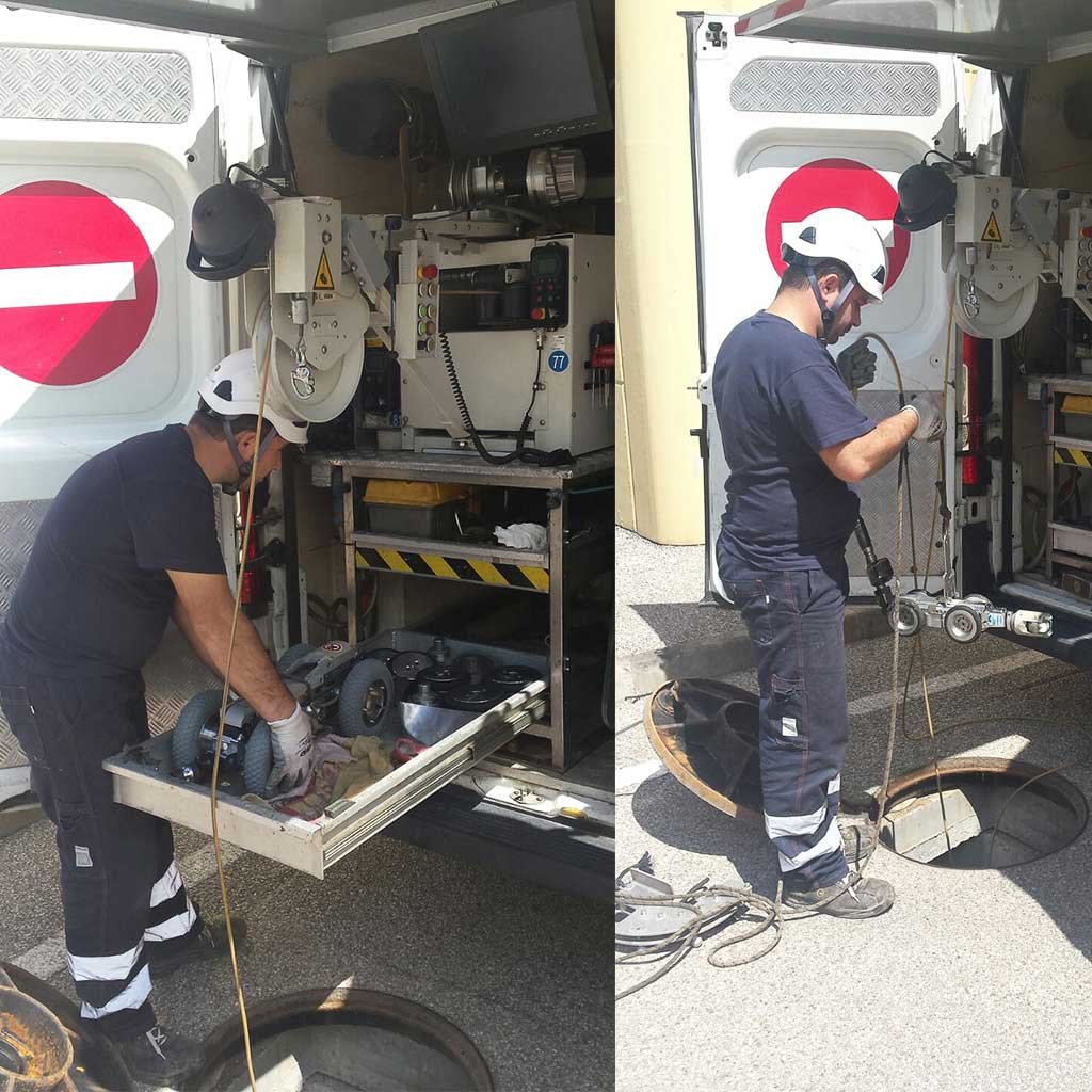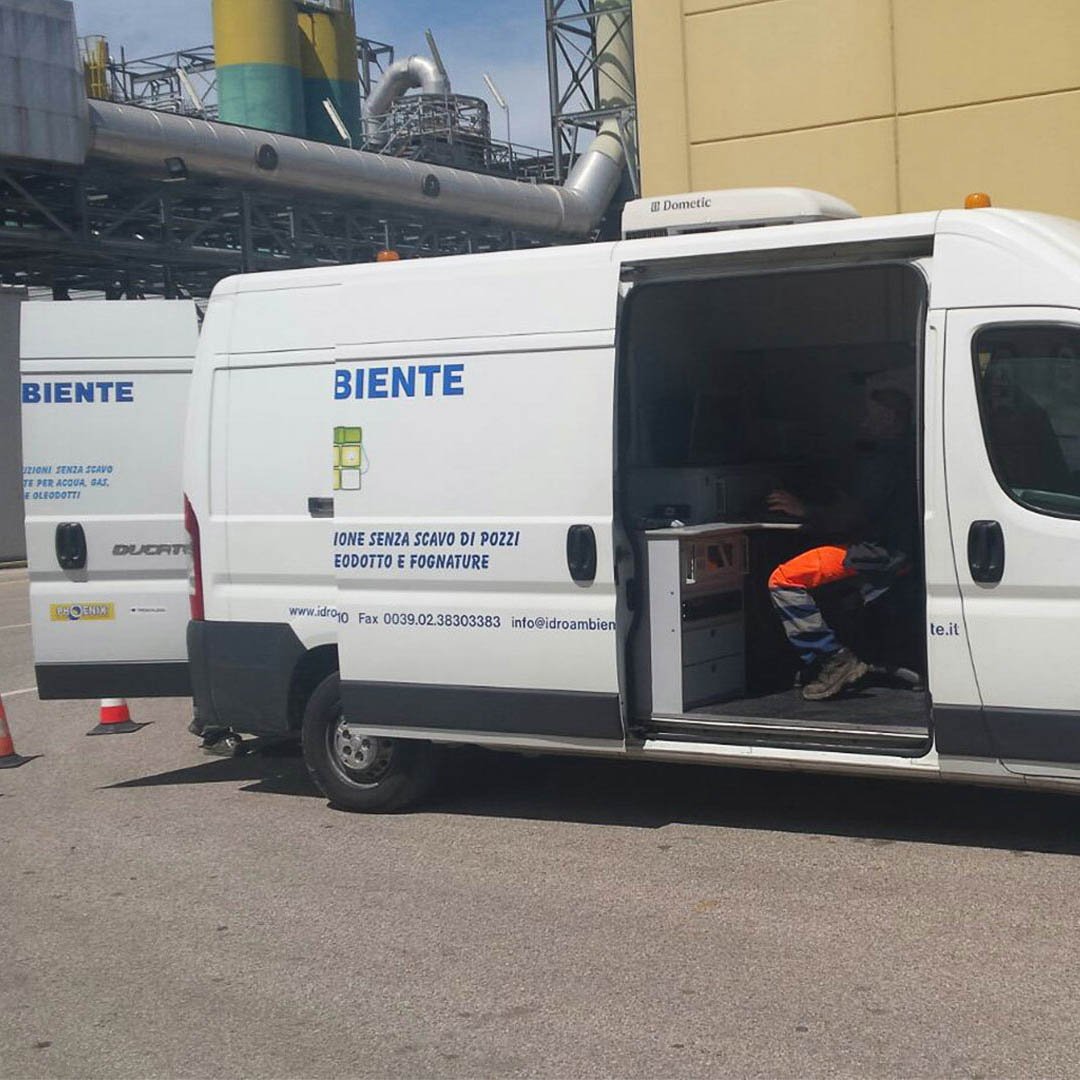 Disponiamo di 2 unità mobili per la video-ispezione, allestite su furgone. Queste vengono utilizzate per l’ispezione di pozzi o fognature civili e industriali. Le unità mobili garantiscono la massima qualità per il cliente finale, all’interno hanno tutto il necessario per rispondere a qualsiasi esigenza di campo.