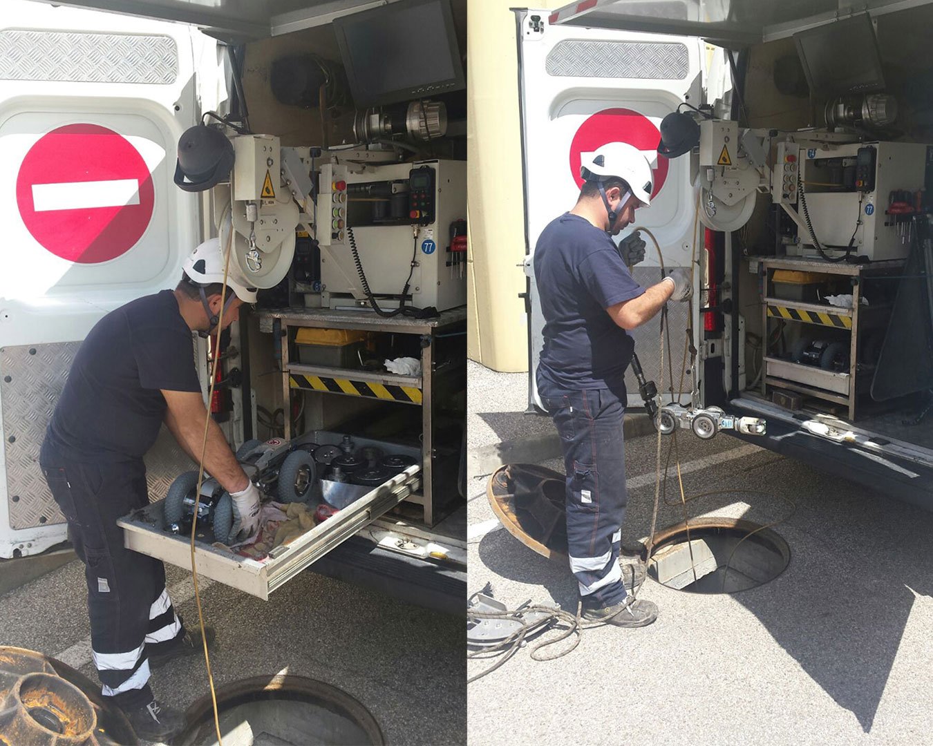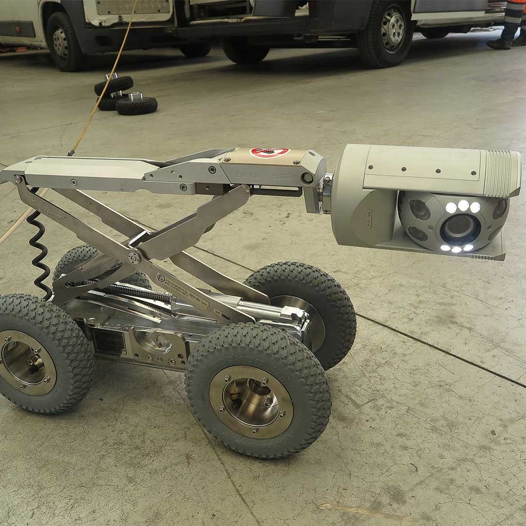Le apparecchiature che usiamo per questa operazione variano a seconda dei modelli e delle caratteristiche offerte, ma generalmente consistono in videocamere robotizzate CCTV (Closed Circuit Television), di diverse dimensioni, montate su aste (spinte manualmente all’interno della condotta) o su carri semoventi comandati in remoto attraverso cavo ombelicale avvolto su un aspo. Il tutto è collegato ad una consolle di comando, la quale comprende anche un monitor che restituisce quanto ripreso dalla telecamera, registrando le immagini in digitale.